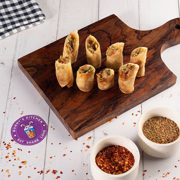Veg Spring Roll Hand Made Noodles Sauted With Capsicum , Onion , Cabbage & Carrot Wrapped Delicate Sheets